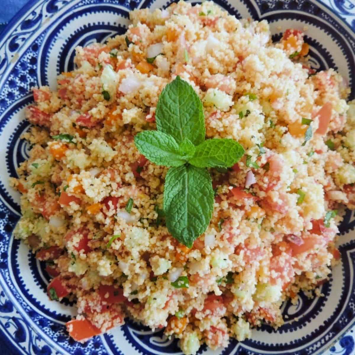 This is my Homemade Lebanese Tabbouleh, and yes, it’s a little different from the traditional version. In our home, it’s loaded with herbs (parsley, mint, and coriander), lots of small-diced vegetables, and we use couscous as the grain base. The exact mix can change depending on where your family is from, and that’s what I love about tabbouleh: it’s flexible and personal.